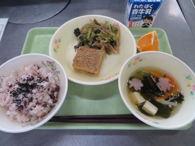 今日は1年生の入学と、他の学年の進級を祝うこんだてです。