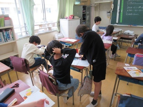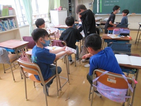 自力で解決するほかに、複数の子ども同士で、どうやって答えを出すか、情報交換します。