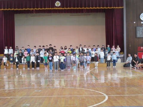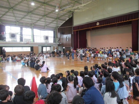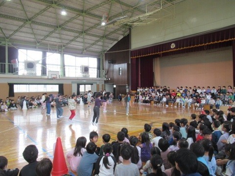 今日は、陶鎔小学校のそれぞれの学年が、学校でがんばってきたことを紹介したり、プレゼントを贈ったりしました。