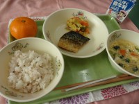 献立名小豆ご飯鯖の塩焼き浅漬けかきたま汁みかん牛乳 1月15日、または15日前後...