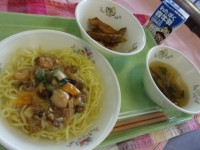 献立名あんかけやきそば中華スープ青のりポテト牛乳健康で元気に長いきするために、野...