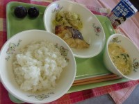 献立名ごはんさごちのごま味噌焼きかきたま汁じゃこキャベツ巨峰牛乳巨峰やぶどう主 ...