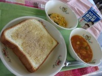 献立名セサミトーストチキンビーンズパリパリフレークサラダ牛乳ごまの力!ちいさなつ...