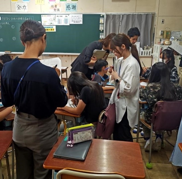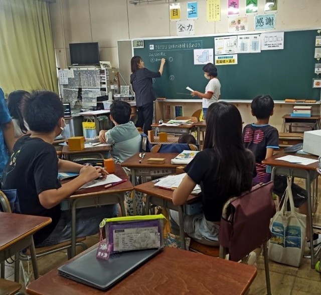 6年生が校内研究で算数の授業をしました。全教員で授業を見て学び合いました。
