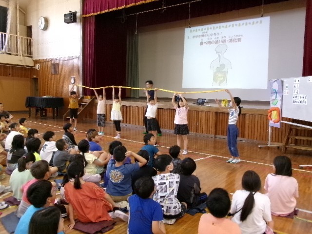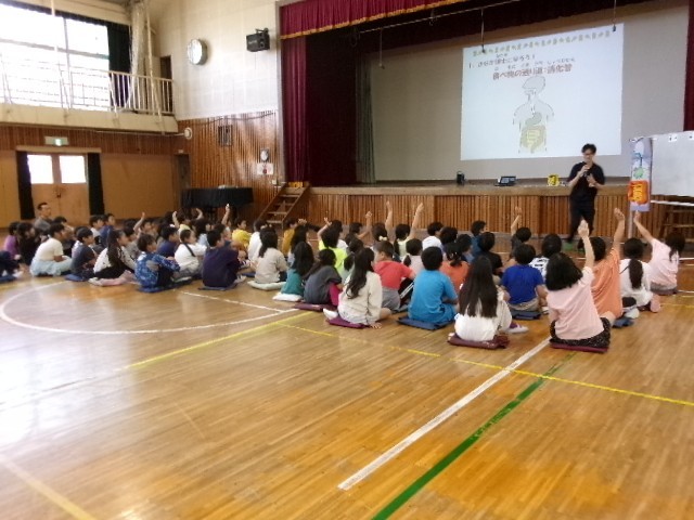 小腸の長さは6m、体の中の細菌は100億個でおよそ1㎏あることなど、子供たちにはたくさんの驚きがありました。