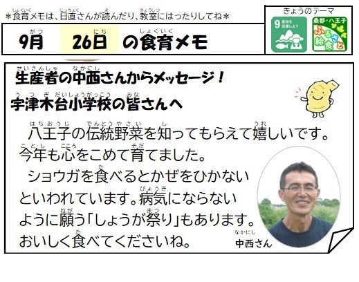 今日は食育メモで、生産者さんのメッセージも紹介しました。