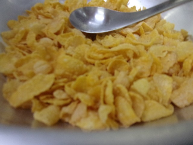パリパリフレークサラダはコーンフレークプレーン味をトッピングして、パリパリ食感をたのしみながら食べます。