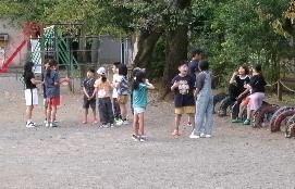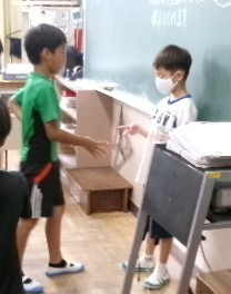 今日の朝学習は、はじめての取り組みで、異学年がペアになって算数の朝学習をしました。1年生と6年生はタブレットを使って、2年生と4年生はじゃんけん足し算ゲーム、3年生と5年生は九九を使ったリズム遊びをしていました。楽しみながら、朝学習に取り組んでいました。