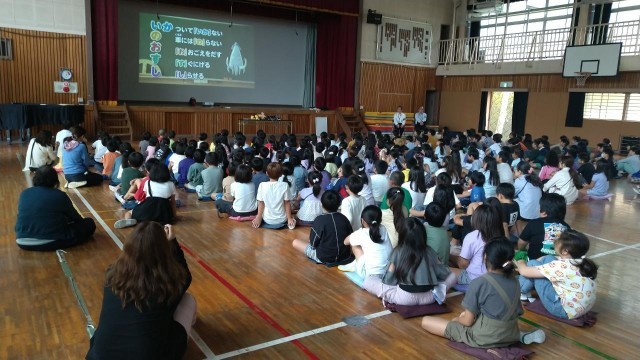 1、2、3年生は警察の方から、自分の安全を守るために大切なことを学びました。