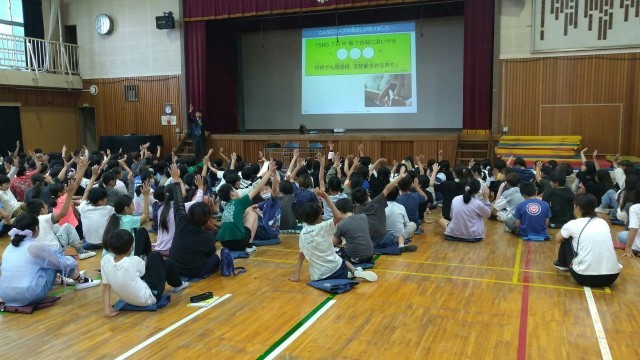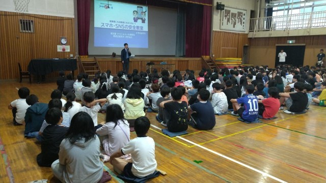 4、5、6年生は、ファミリーeルールの方からネットやSNSの危険性について具体的な事例をもとに学びました。