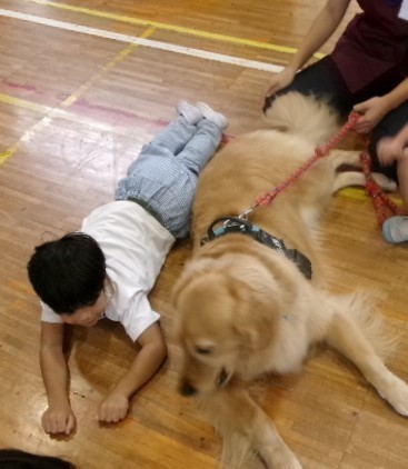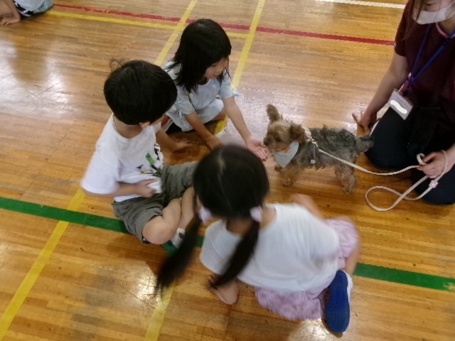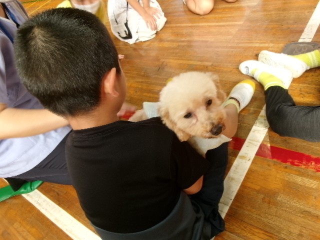 子供たちは、犬の温かさに触れ、笑顔いっぱいの時間でした。