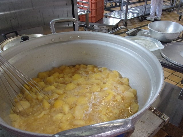 給食のジャムは、生のりんごをつかって手作りです。