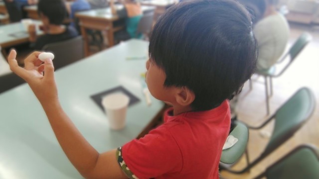 子どもたちは切れない糸を見つけようと根気よく取り組んでいました。
