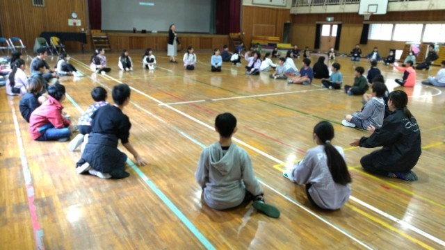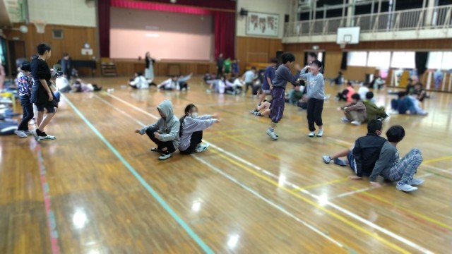 代表者を応援する意味も込めて、5年生は劇を作り上げるために大切な「コミュニケーションとイマジネーション」を高める活動の体験をさせてもらいました。