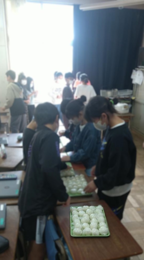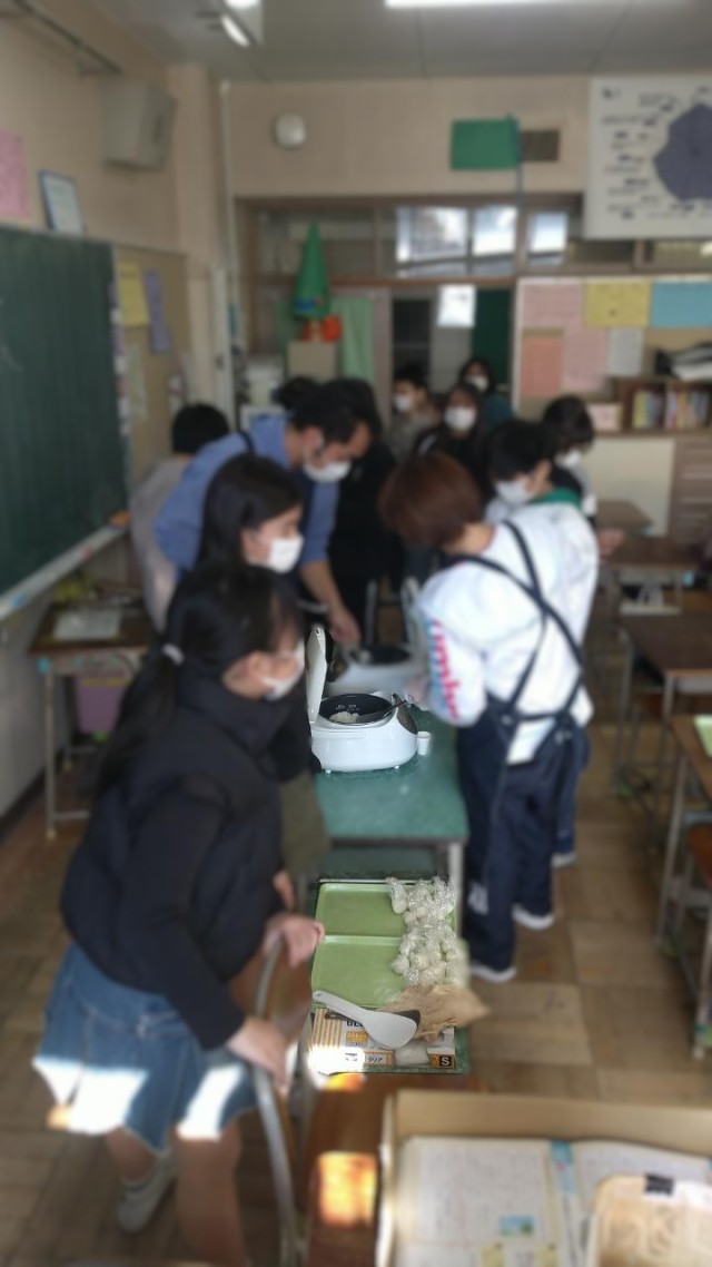 自分たちが育てて収穫した宇津木米「うまい」を4年生にも味わってもらおうと、おにぎりを準備しました。