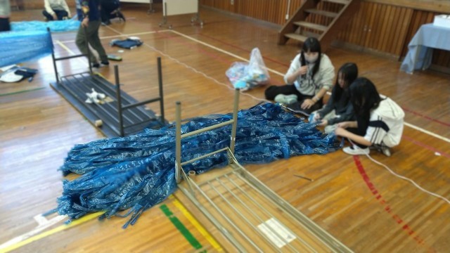 今日は4年生が、会場装飾の一つになりそうな制作を行っていました。