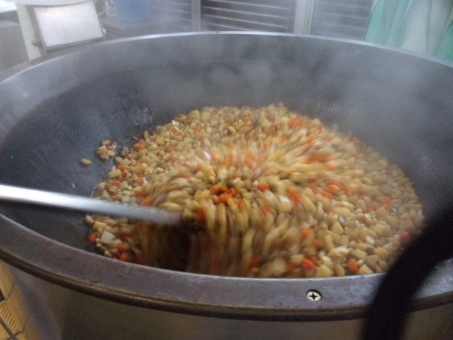 " 給食のスープや汁物の出汁は煮干しや昆布などでとっています。今日は、出汁のうま味をよく味わえ
