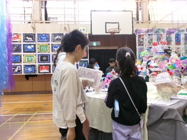 5・6年生の呼びかけや演奏、歌のセレモニーで、展覧会が始まりました。