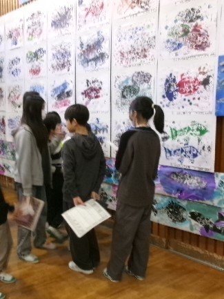 異学年でお互いにガイドしながら、展覧会の鑑賞をしています。