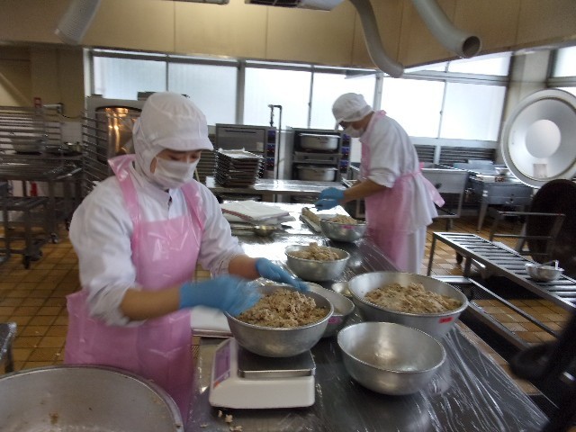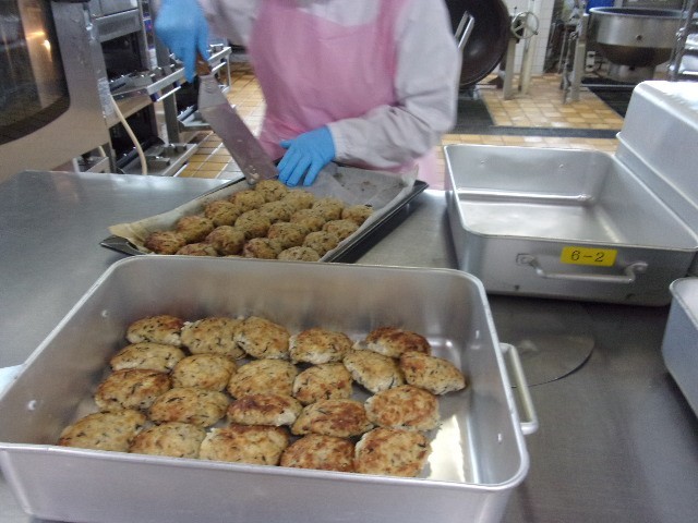 きょうは、れんこんのシャキシャキ感がはいった豆腐ハンバーグです。ひとつひとつ丁寧に手作りし、