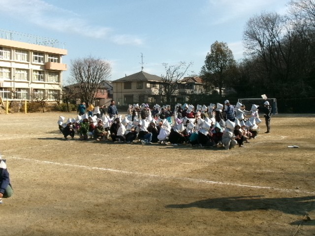 今月の避難訓練は予告なしで行われました。地震からの火災でしたが、「おかしもち」を守り、しっかりと避難していました。