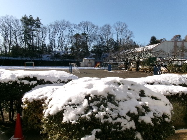 昨日の雪が、少しだけ残っていたので、校庭北側では、子供たちが雪遊びをしていました。
