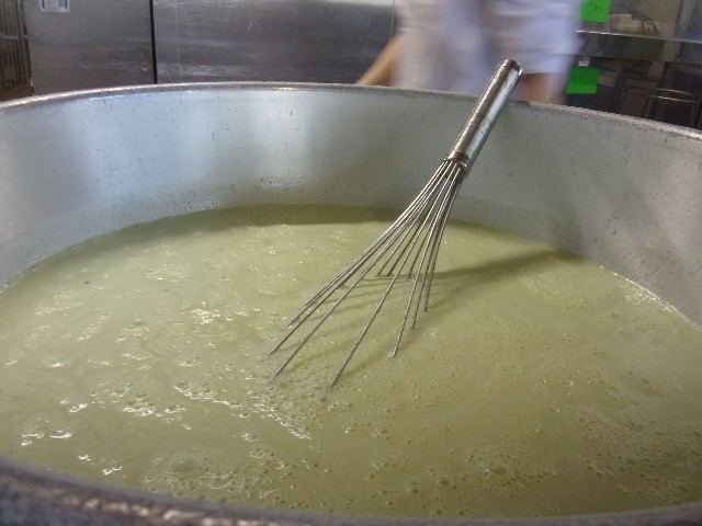 ♪桑の都クラフティ クラフティは、たまご、牛乳、をベースにしたカスタードクリーム味のデザート。 桑の葉のさわやかな緑色と、甘いくだものが合わさりました。
