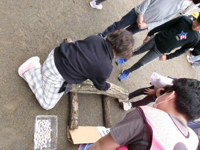 今日は、たてわり班グループの25班から36班が、椎茸の菌を木に入れる活動をしました。今日のグループも6年生が手際よく指示をして、あっという間に終わっていました。