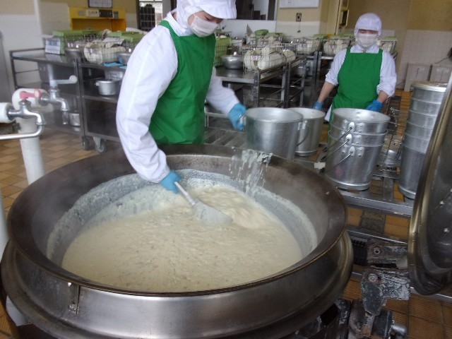 今日はその白菜が、給食室でとろりとあたたかいクリーム煮になりました