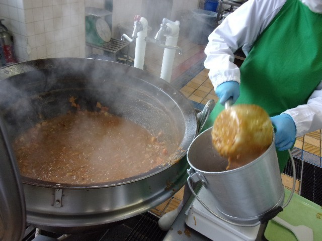 給食のカレーはルウから手作り。時間をかけて丁寧に煮込み、おいしいさを引き出しています。