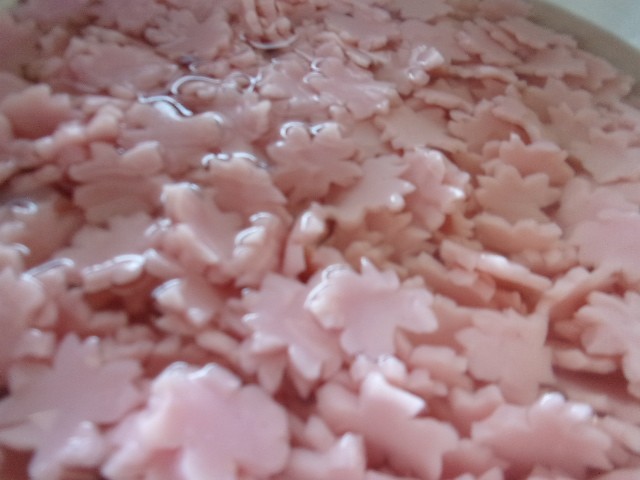 豆の煮汁が赤いので、もち米も赤くなります。