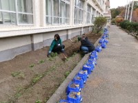 2学期の学期末あたり、いつもと同様に用務員室では不思議な光景が繰り広げられていました。給食で使用したたけのこの缶を加工していたり、家のような物を組み立てていたり、はたまた外では、以前紹介しましたカニスコを使い穴を掘っていたり・・・。何ができるのか注目していると・・・