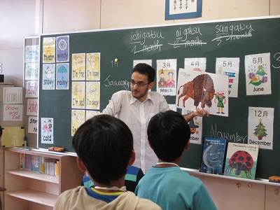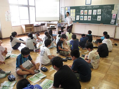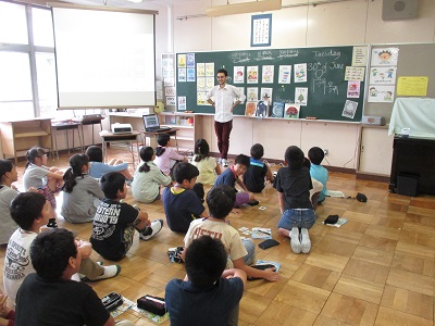 今日はメディ先生がおこしになり、5・6年生が英語の学習を行う日でした。