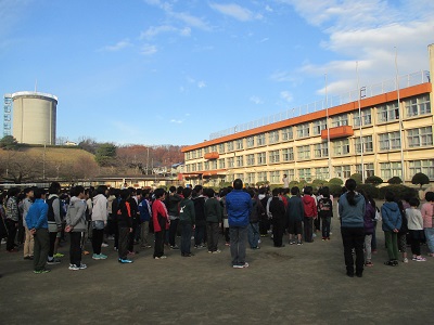 新しい一週間のスタート! 今朝は寒い朝でしたが、月曜日は元気に全校朝会からスタートです!