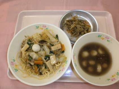 皿うどんは、長崎チャンポンと同じ具にとろみをつけて麺の上にかけた料理です。