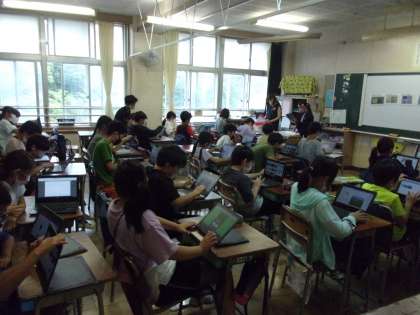 5年生が22日、23日の姫木平林間学校に向けて、クロムブックを使って調べ物をしています。