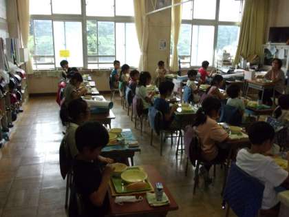 今日は1学期最後の給食の日でした。栄養士さんや調理員さんに感謝して、おいしい給食をいただきました。