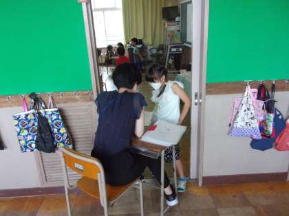 各学級にて子供たち一人一人に先生から「あゆみ」を渡しています。