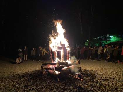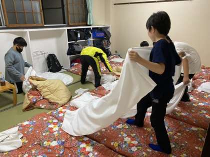 姫木平2日目ですが、1日目のキャンプファイヤーと部屋での様子です。一生懸命、布団の準備をしています。