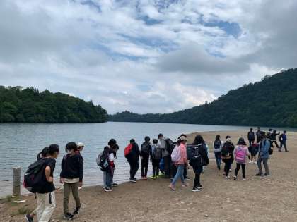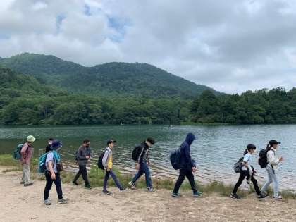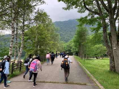 湯ノ湖ショートハイキングの写真です。風や自然を感じながら、湖の周りを歩いています♪