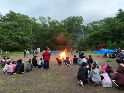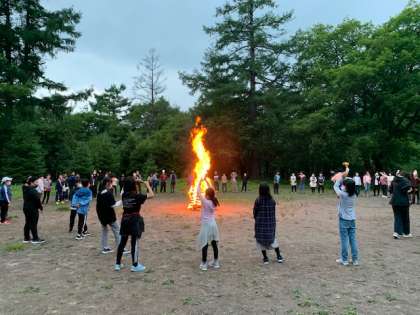 キャンプファイヤーが始まりました。全力で踊って、みんなで盛り上がっています。最高の思い出になりますね♪♪♪