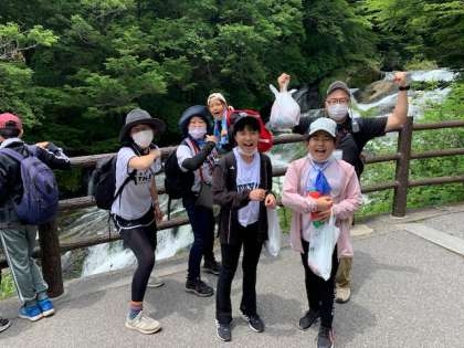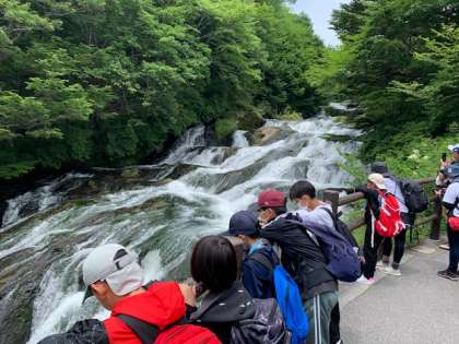 奥日光三名瀑2つ目の龍頭ノ滝に到着しました。ハイキングをみんな、最後まで頑張りました!!!