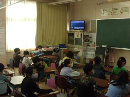 今週最後の日も良い天気になりました。子供たちも元気に登校してきました。今日も丸山駐在所のおまわりさんが横断歩道を横断する子供たちの見守りをしてくださっています。朝の時間には集会委員会の皆さんがテレビ放送でクイズを出してくれました。