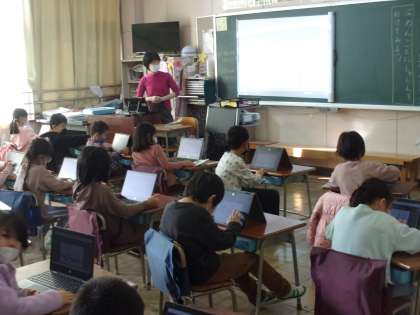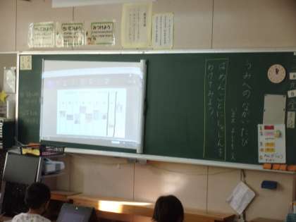 1年生の国語「うみへのながいたび」の学習の様子です。クロムブックを活用して、物語を場面ごとに順番に並び替えています。本校の校内研究で行っている「AL+GIGA」の授業実践を普段の授業でも取り入れています。1年生もここまでクロムブックを活用できるようになりました。