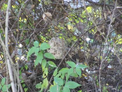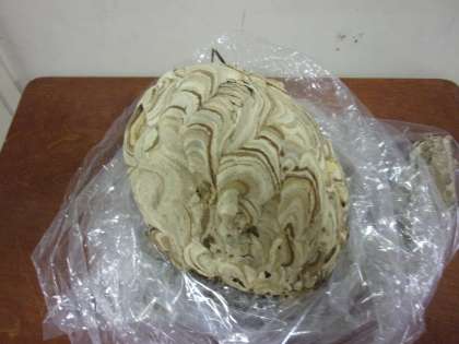 先日、体育館裏にある木の茂みの奥深くにスズメバチの巣があり駆除しました。活動時期を過ぎているのでに巣の中には蜂はいませんでした。大きな巣で珍しいので理科の学習用に学校に保管をしています。