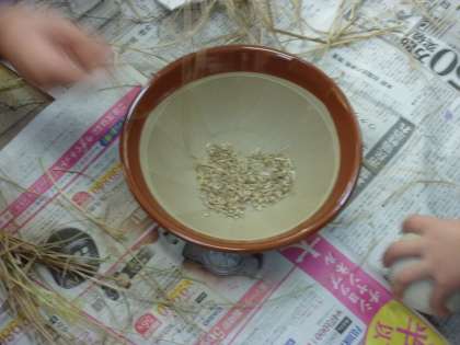 5年生の総合的な学習の時間「稲を育てて食べよう」の学習の様子です。育てた稲からお米を収穫しました。
