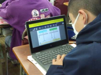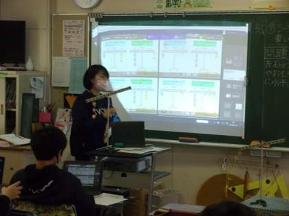 「てこのはたらき」の学習で「てこ」が水平につり合うときの法則について考えました。教員が用意したイラストで予想を立て、全員の予想をオクリンクを使って提示しました。その後は班で実験をしました。クロムブックを授業の中で効果的に活用できる場面を工夫して使っています。