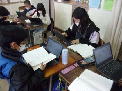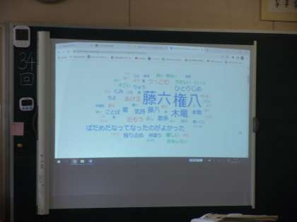 「木流うるし」という人形劇の音読をしました。感想を「AIテキストマイニング」で提示したり、音読の読み方の工夫についてJamボードを使って書いたりしました。