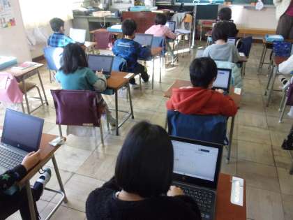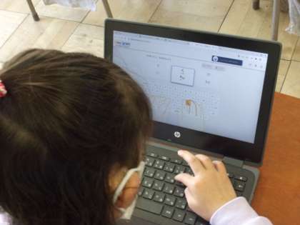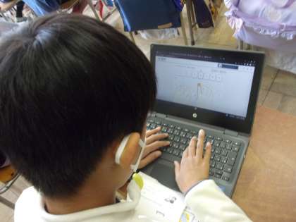 今日は朝の時間に1〜4年生はクロムブックや読書、5・6年生は英語のモジュール学習に取り組みました。1・2年ではクロムブックでタイピングをしている学級もありました。ローマ字入力が1年生や2年生でもできるようになっています。