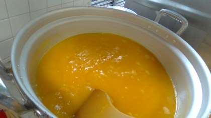 写真は、みかんジュースでトロトロのソースを作るところと、